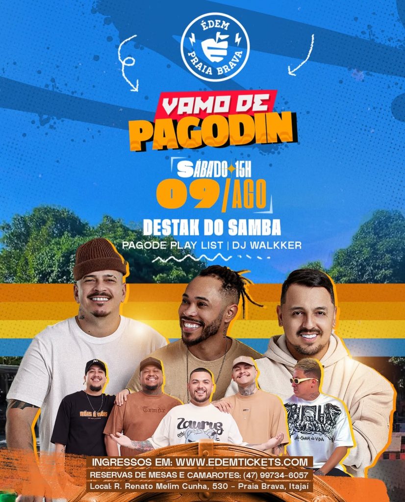 Praia Brava recebe o evento “Vamo de Pagodin” neste sábado com Pagode Playlist e DJ Walker